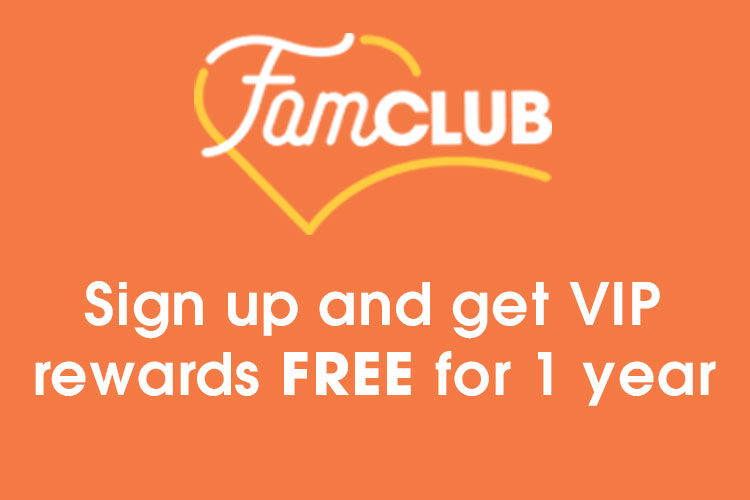 Thank you for signing up! Don't forget, you're part of the FamClub now. Check out all your Amazing Rewards here.
